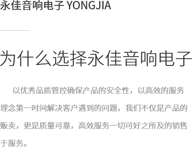拉薩永佳音響電子有限公司 拉薩永佳音響電子有限公司坐落于美麗富饒的圣城拉薩,公司前身為拉薩昊成音響電子銷售有限公司,注冊資金為300萬元,成立于2010年3月公司地址位于西藏拉薩市貢布塘南側1號薩博廣場4-5、4-8號。拉薩永佳音響電子有限公司主營專業(yè)舞臺音響設備、會議音響系統設備、公共廣播音響系統設備、網絡及監(jiān)控設備、多媒體教學設備、多媒體投影機、幕布、弱電線材、辦公設備、LED液晶顯示屏品種齊全、服務效率、拉薩